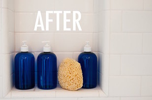 أفرغي محتويات علب الشامبو والبلسم و كريم الاستحمام في علب متشابهة أو علب تحبين شكلها لتحصلي على حمام يشبه حمامات الفنادق الفخمة