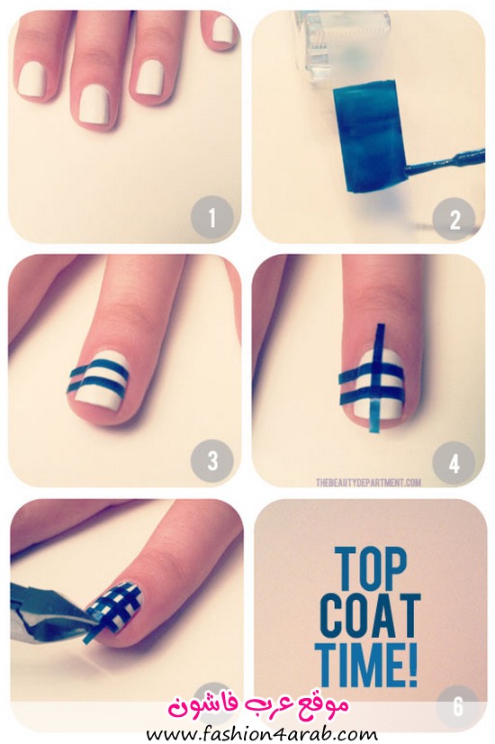 اصنعي بنفسك طلاء المنايكير لاظافرك بطريقة سهله على شكل خطوط زرقاء شاهدي الخطوات الان المصدر: beautydepartment.com
